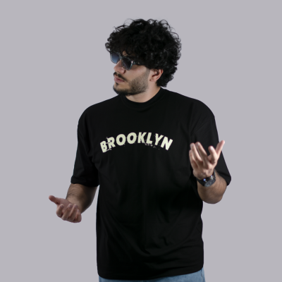 Model wearing a black 1945 t-shirt for men - new summer collection